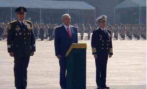Después, López Obrador se trasladó al presídium, frente a Palacio Nacional, donde se tiene prevista la entrega de ascensos y la entrega del Premio Nacional del Deporte.