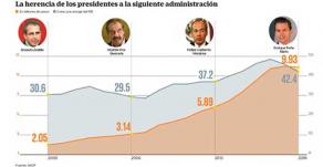 Con Felipe Calderón los pasivos se elevaron a 5.9 billones de pesos y llegó a 37.2% en relación con el PIB.
