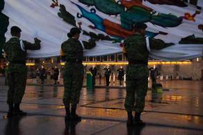 La Banda de Guerra de la Secretaría de la Defensa Nacional interpretó el toque militar silencio.