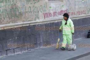 Los elementos de la Secretaría de Seguridad de la Ciudad de México se apostaron en diversos puntos de Palacio ante la posible llegada de mujeres y colectivas feministas convocados para protestar por el alto índice de feminicidios y violencia contra este sector de la población en todo el país.