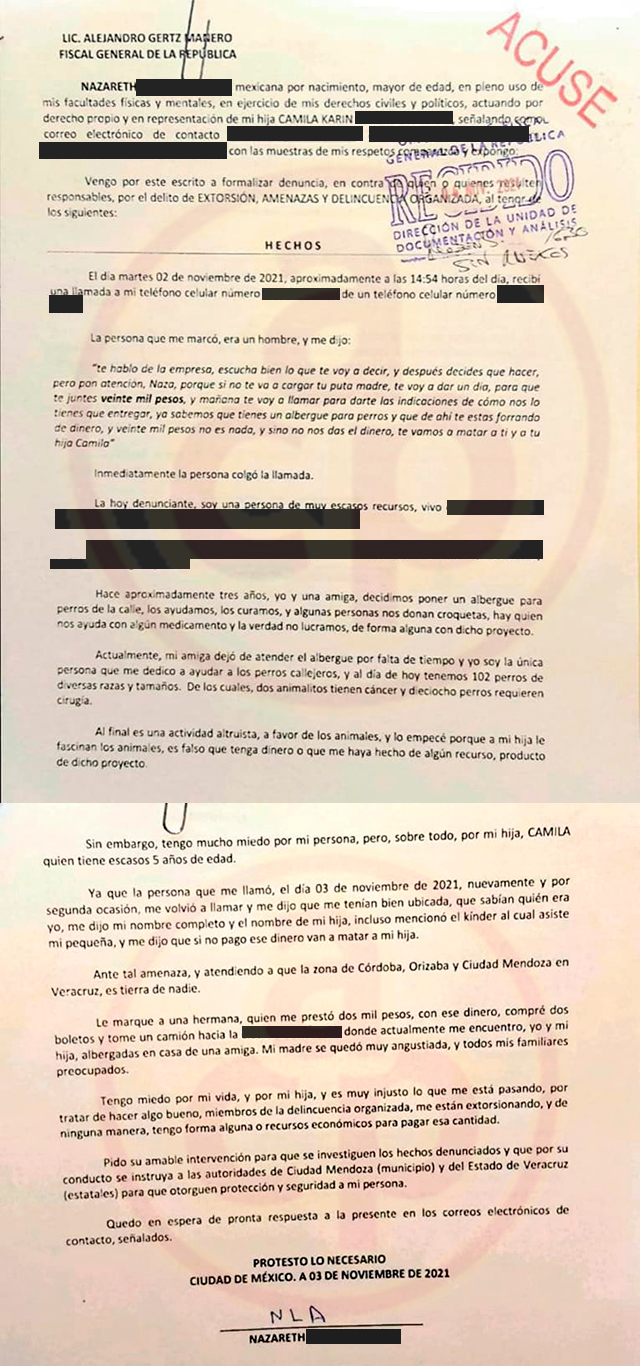 No obstante, las llamadas siguieron y le explicaron que si no entregaba la cantidad exigida matarían a su niña, por lo que la mujer, para quien resulta muy complicado reunir el dinero, acudió a Veracruz en busca de auxilio, aunque “ninguna autoridad me quiso atender, no me quisieron recibir mi denuncia, fui a Xalapa y lo mismo, nadie de la Fiscalía del Estado de Veracruz me quiso atender y recibir mi denuncia”, dijo.