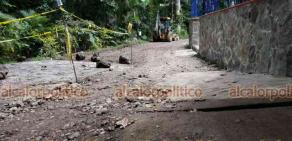 Vecinos de la colonia Mariano Escobedo, en Coatepec, reconstruyen la calzada de las Flores con mano de obra y recursos propios.