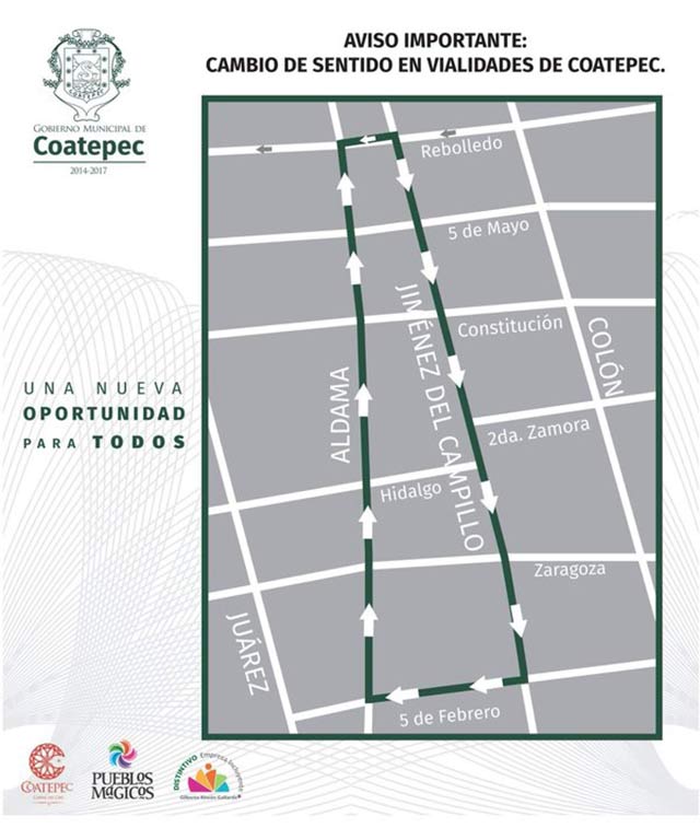 - La calle 5 de febrero circulará de Jiménez del Campillo hacia Aldama