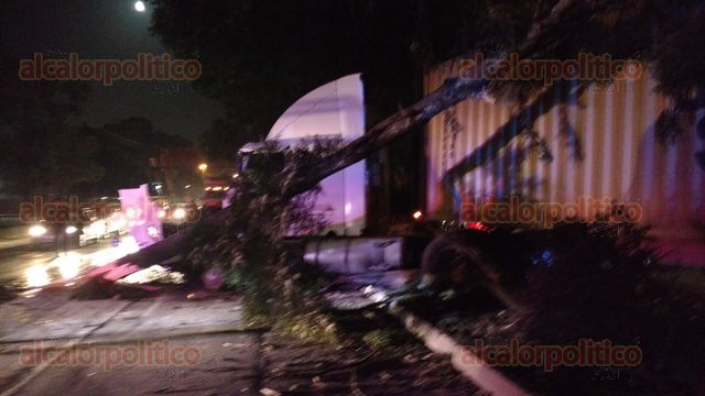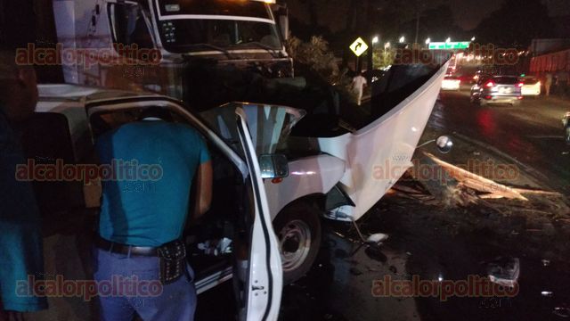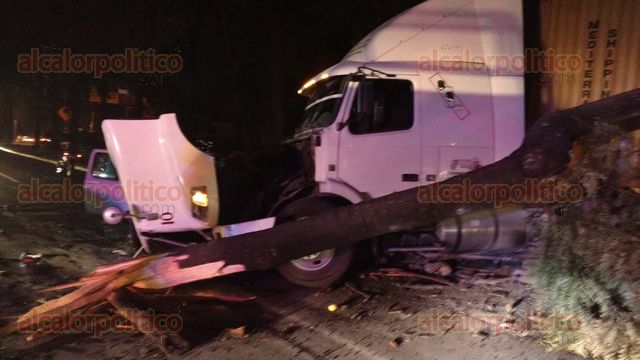 Está noche un tráiler que era conducido a gran velocidad sobre la avenida Lázaro Cárdenas, en el carril que conduce a Veracruz, causó un aparatoso accidente, chocó contra un árbol, una camioneta y un poste, el saldo es de tres lesionados no de gravedad.
