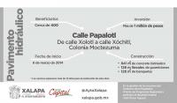 El alcalde Américo Zúñiga Martínez inauguró este lunes 841 metros cuadrados de concreto hidráulico de la calle Papalotl, de Xolotl a Xóchitl, en la colonia Moctezuma, que incluye 126 metros lineales de guarniciones y 128 metros cuadrados de banquetas, los que mejorarán la calidad de vida de las familias que ahí habitan.