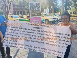 Este viernes, habitantes del fraccionamiento Lomas Verdes se manifestaron frente al Palacio Municipal de Xalapa para exigir la construcción de un muro de contención.