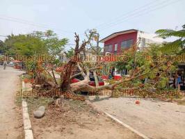 La mañana de este lunes se registró la caída de un árbol de framboyán a orillas de la carretera federal 129 Amozoc-Nautla, en la localidad Javier Rojo Gómez, perteneciente a este municipio.