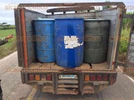 Entre las localidades de Norma y Cuatotolapan, personal de la SEDENA logró el aseguramiento de más de tres mil litros de hidrocarburo de dudosa procedencia, dos camionetas y una persona.