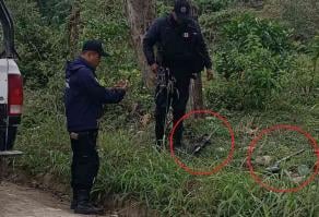Elementos de la Policía Municipal, en coordinación con la Guardia Nacional y la Policía Estatal acudieron al sitio para realizar recorridos de reconocimiento. Durante el operativo fueron detectadas dos personas con vestimenta camuflaje, quienes al notar la presencia policial se dieron a la fuga, dejando abandonadas dos armas largas: una escopeta calibre 12 y una escopeta calibre 16.