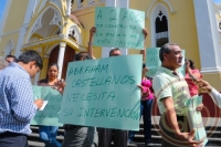 Integrantes de la Asociación de Padres de Familia de la escuela “Abraham Castellanos” se manifestaron en Plaza Lerdo para exigir al Gobierno Estatal su intervención para reparar los salones que, aseguran, han sufrido daños como filtraciones, goteras y cuarteaduras.