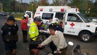 Atiende Cruz Roja a motociclista que chocó contra taxi, frente al Velódromo, en Xalapa