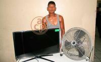 Los elementos de la Policía Estatal capturaron a un presunto ladrón, cuando sacaba un televisor pantalla de plasma y un ventilador de la tienda Salinas y Rocha, ubicada en el primer cuadro de la ciudad de Veracruz. Se presume que este sujeto, en complicidad con otros participaron en el atraco a un negocio de tenis también en la zona centro y a un local ubicado en el fraccionamiento Reforma.
