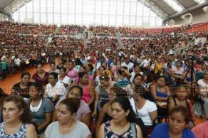 A las 11:00 horas, los 4 mil padres de familia tenían casi abarrotado la que fuera en su momento casa del equipo de basquetbol “Halcones Rojos de Veracruz” con capacidad para 5 mil espectadores; pero desde el estrado que ubicaron en el lado Este del recinto deportivo, podía verse el gran número de abanicos que se movían por el intenso calor, pese a ello y ante las suplicas de los asistentes en ningún momento se prendió el aire acondicionado.