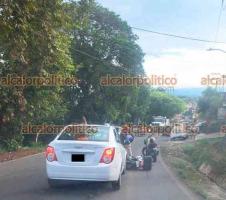 Al pasar por el lugar conocido como parque El Naranjillo, por causas no determinadas, el automóvil impactó por alcance al motociclista, quien resultó ileso pese a que su moto quedó atorada en el vehículo. Personal de Tránsito del Estado llegó a tomar conocimiento para deslindar responsabilidades.
