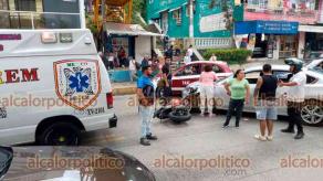 La tarde de este jueves, minutos después del mediodía, se registró el choque de un auto con una motocicleta, en la calle Bolivia, esquina con Encino, en la colonia Francisco I. Madero, de Xalapa.