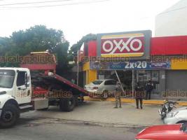 Este sábado un automóvil particular terminó adentro de un Oxxo ubicado en la Avenida Universidad y Avenida Uno de la colonia Benito Juárez, en Coatzacoalcos.