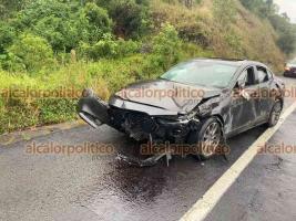 Auto se fue contra muro de contención, en carretera Perote-Xalapa