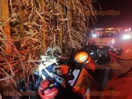 Un movimiento de grupos de emergencia se registró la noche de este sábado en la carretera federal 140 tramo Xalapa-Veracruz a la altura de la recta de Cerro Gordo donde un vehículo se estrelló contra la parte de un camión cargado con caña de azúcar quedando sus ocupantes dos mujeres prensadas.