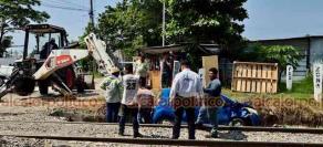 Una mujer fue arrastrada por el tren a bordo de su automóvil en el acceso al fraccionamiento Palma Real, en el puerto de Veracruz.