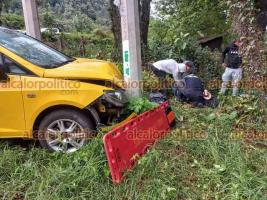 La mañana de este sábado un automóvil se quedó sin frenos cuando circulaba en la carretera estatal que comunica Banderilla con Jilotepec, arrolló a un motociclista y terminó impactándose contra un poste de la Comisión Federal de Electricidad (CFE).