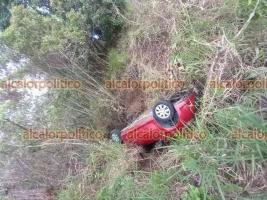 Auto volcó fuera del camino, en carretera Xalapa-Alto Lucero