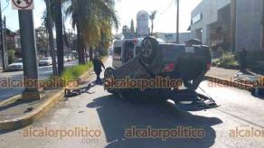 De acuerdo con los primeros reportes, un automóvil compacto marca Suzuki terminó volcado con las llantas hacia arriba tras ser presuntamente impactado por un vehículo Nissan de color blanco, cuyo conductor no habría respetado la preferencia de paso. Tras el percance, el presunto responsable se dio a la fuga.