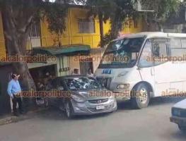 Autobús avienta auto al arriate, en avenida Chedraui Caram de Xalapa