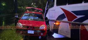 Minutos antes de las 23:00 horas de esta martes 19 de agosto se registró el choque de un autobús y un auto particular en la carretera Xalapa-Coatepec, a la altura del entronque con el libramiento
