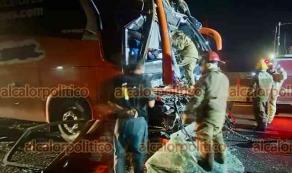 Un autobús de pasajeros chocó por alcance contra un camión cañero la madrugada de este lunes, a unos metros de la caseta de La Antigua. Ambulancias de Línea Azul, Cruz Ámbar y Bomberos La Antigua atendieron en el sitio a más de 5 lesionados con heridas mayores; posteriormente, fueron llevados para valoración médica a hospitales de Cardel. Todas las personas afectadas eran originarias de la Ciudad de México.
