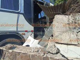 Un lesionado de gravedad y cuantiosos daños materiales fue el saldo preliminar de un accidente registrado la tarde de este viernes en la calle 16 de Septiembre de la colonia La Curva, luego de que un autobús se quedara sin frenos al descender una pendiente y terminar impactándose contra una vivienda, dañando a varios autos a su paso.