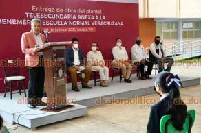 El gestor de la obra del plantel de Telesecundaria Anexa a la Benemérita Escuela Normal Veracruzana (BENV), Atanasio García Durán, aseguró que el objetivo de la “Nueva Escuela Mexicana” es la autosustentabilidad, es decir, no esperar que alguien ajeno contribuya a la limpieza de las instalaciones educativas o porque se le paga para ello, sino que todos los miembros de su comunidad deben colaborar en esa tarea.