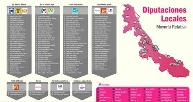 El Partido Nueva Alianza (PANAL) registró y le fue aprobada su lista completa con 30 candidaturas, mientras que el Partido del Trabajo (PT) participará por su propia cuenta en dos distritos, al igual que MORENA y PES, que también se registraron solos en dos distritos.