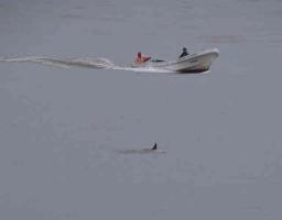Cerca de los mamíferos pudieron verse a pescadores en sus lanchas quienes en ningún momento buscaron intervenir o acercarse a los delfines.
