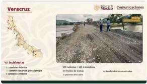 El secretario de Infraestructura, Comunicaciones y Transportes (SICT), Jesús Antonio Esteva Medina, informó que en Veracruz se redujo a 46 el número de localidades incomunicadas, tras las afectaciones ocasionadas por las lluvias en el norte del estado.