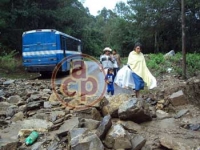 Fue por la intensa lluvia que un cerro cercano a esta comunidad, se deslavó y trajo consigo esta pequeña barrancada, que por fortuna no cobró ninguna vida humana pero que sí, originó que un promedio de cinco casas quedaran inundadas y con lodo. Además de éstas, la escuela de esa zona quedó destruida y por ahora inservible, toda vez que el lodo penetró.