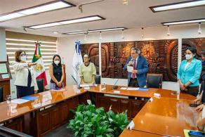 Además de Martín Aguilar, Sánchez Zurita y Flores Covarrubias, estuvieron presentes en la ceremonia: la secretaria Académica, Elena Rustrián Portilla; la de Administración y Finanzas, Lizbeth Viveros Cancino; la de Desarrollo Institucional, Jaqueline Jongitud Zamora; la Abogada General, Marisol Luna Leal, y la directora general de Comunicación Universitaria, Norma Trujillo Báez.