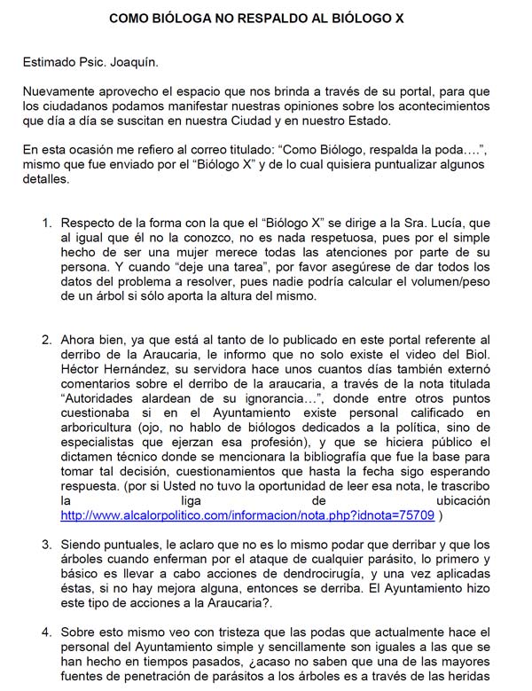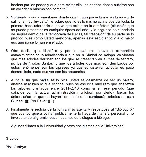- Le aclara al “Biólogo X” que los árboles que caen son los cipreses, por su sistema radicular, nada que ver con las araucarias