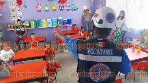 Para capacitar a los infantes en la forma correcta de reaccionar ante situaciones de riesgo, así como a las educadoras, este martes se llevó a cabo un simulacro de sismo dentro de las instalaciones del jardín de niños "María Montessori", en la localidad Adalberto Tejeda.