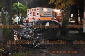 En los primeros minutos de la madrugada de este domingo se registró un aparatoso accidente en la avenida Miguel Alemán donde un auto fue impactado contra un árbol donde dos hombres resultaron lesionados y pérdida total del vehículo.