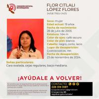 Se trata de la joven Flor Citlali Flores López, estudiante de la ITESCO de 19 años, quien salió de su domicilio para reunirse con unos compañeros para realizar un trabajo en equipo, propio de sus actividades académicas.