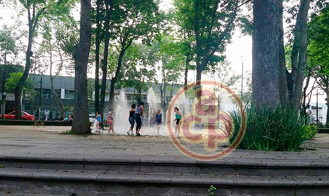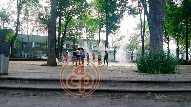 Buscan refrescarse en las fuentes de la avenida Xalapa
