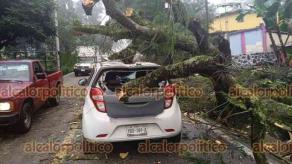 Cae árbol sobre auto en movimiento en carretera Las Trancas-Coatepec