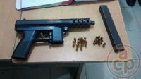 A estas personas se les localizó en el piso del lado del copiloto una pistola marca Intratec Miami Fla calibre 9 milímetros Luger modelo Tec-9 matrícula 15944 con cargador y capacidad de 30 cartuchos; en la guantera superior se encontraron 10 cartuchos calibre 38 SPL y en el asiento trasero dos pasamontañas color negro.