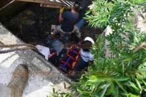 Cae joven a canal de aguas negras en el barrio La Palma de Acayucan