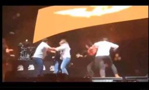 En el video presentado en ForoTV, se observa a Jorge Álvarez Máynez en el escenario, cuando una pantalla que se encontraba a sus espaldas fue movida por el viento.
