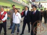 Al lugar arribaron el director de Espacios Educativos, Sergio de la Llave; la subsecretaria de Educación Básica, Xóchitl Adela Osorio Martínez; el secretario de Educación, Adolfo Mota Hernández; así como la secretaria de Protección Civil, Noemí Guzmán Lagunes, quienes recorrieronlas instalaciones con la directora del plantel, Nancy Callejas Sánchez.