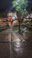 Elementos del cuerpo de Bomberos y personal de Protección Civil trabajaron de manera coordinada hasta las 7:00 horas para retirar el tronco y ramas que obstruían el paso, así como para liberar los cables caídos.