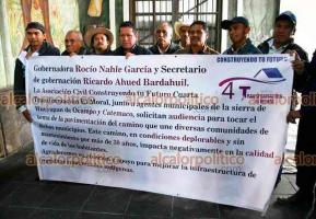 Este lunes, pobladores del municipio de Hueyapan de Ocampo, provenientes de 10 comunidades, llegaron a Xalapa para pedir la intervención de la gobernadora Rocío Nahle para dar mantenimiento a su camino principal, el cual, aseguraron, se encuentra en muy malas condiciones debido a las lluvias.