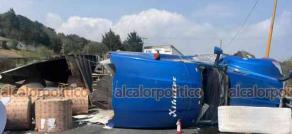 Un camión cargado con rollos de papel para rotativa volcó la tarde de este jueves cuando circulaba sobre la autopista 150-D Orizaba-Puebla, en el tramo carretero Cumbres de Maltrata-Acatzingo, Puebla.