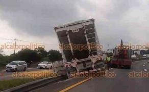 La tarde de este domingo volcó un camión en la autopista Córdoba-Orizaba, a la altura del puente de la Universidad Anáhuac, en el municipio de Fortín.